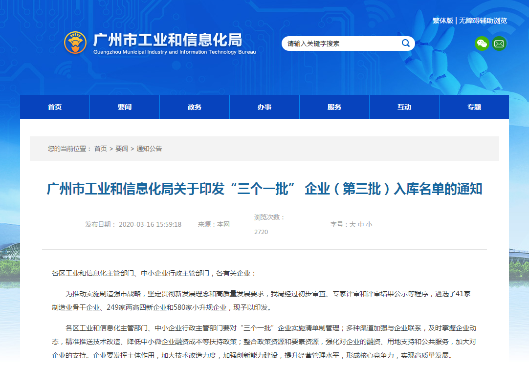 為推動實施制造強市戰(zhàn)略,堅定貫徹新發(fā)展理念和高質(zhì)量發(fā)展要求,經(jīng)廣州市工業(yè)和信息化局審查、專家評審和評審結(jié)果公示等多項程序,全市249家企業(yè)作為“兩高四新”企業(yè)成功入庫“三個一批”企業(yè)名錄。東籬環(huán)境繼經(jīng)廣東省工業(yè)和信息化廳“高成長中小企業(yè)”認定后,再一次受到政府關(guān)注及認可,榮登“三個一批”“兩高四新”企業(yè)名錄。
