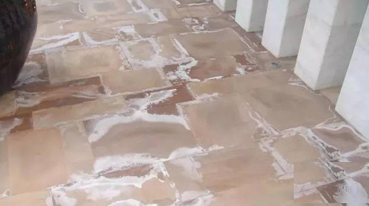 體流出。到達石材表面后,隨著水份蒸發,這些物質就殘留在石材表面,