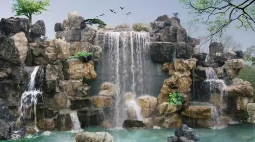 疊后,氣勢宏偉,厚重中又顯出輪廓線的變化。但注意切不可露人工雕鑿痕跡。石體組合成型后,