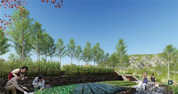 野奢、返璞歸真、田園牧歌的生活。核心景觀軸:景觀花海-休憩體驗-田園實踐-自然探險-定向農業-植物迷宮。