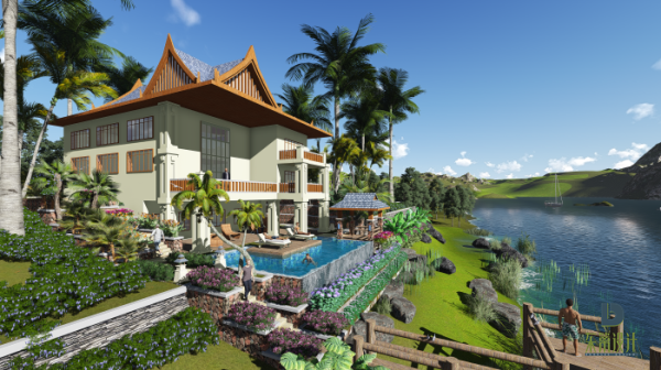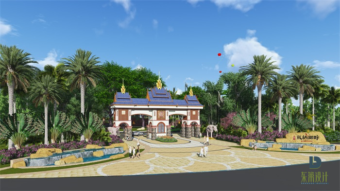 景觀的規劃設計依托項目的最核心自然景觀資源—湖的利用及開發,把湖景及生態林的價值充分挖掘出來,并結合建筑規劃、民族風情、基地生態現狀,以打造高尚度假養生勝地,享受西雙凈土原生態極致體驗為主題目標,營造出美景風水福地的最佳居住養生環境。