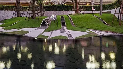 也不同。水景設計要遵循自然生態平衡,同時要利用好水體的特征,把水體和環境景觀有機相結