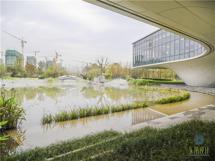 極簡主義的鏡面水,將物境、情境、意境為一體的結合。建筑倒影在水面上,遠遠望去,就像是一幅連綿無盡的山水畫卷,極大地豐富了建筑的視覺感和空間感,顯得妙趣橫生。