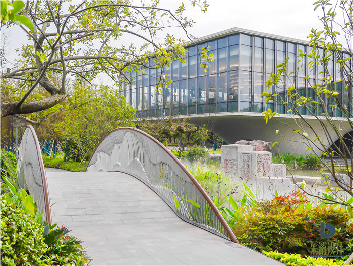 為了使活動空間更加寬廣,在建造的時候,采用架空設計,利用線條等元素,打造視線通廊。曲線的交匯,形成了極強的觀賞性。在擴展了場地空間的同時,保持了極強的設計感。